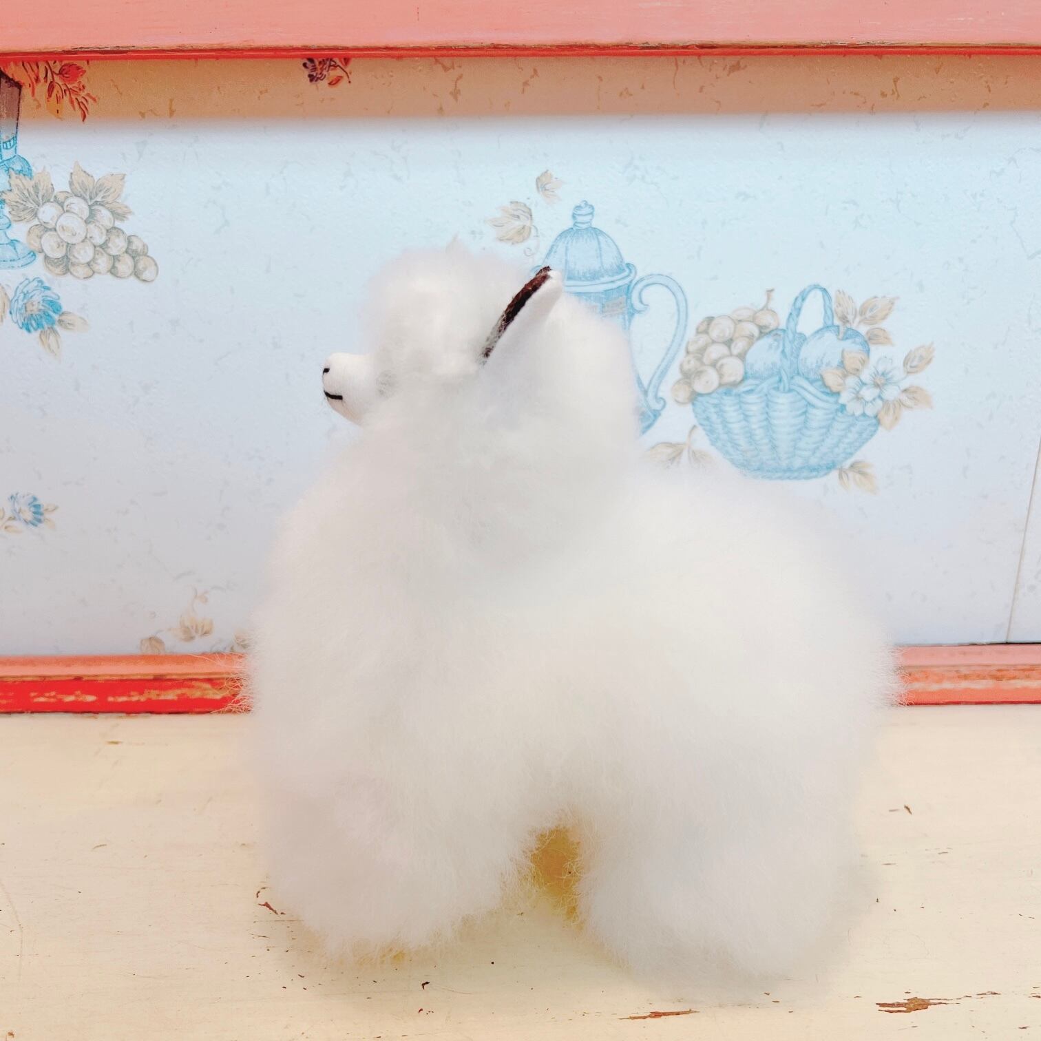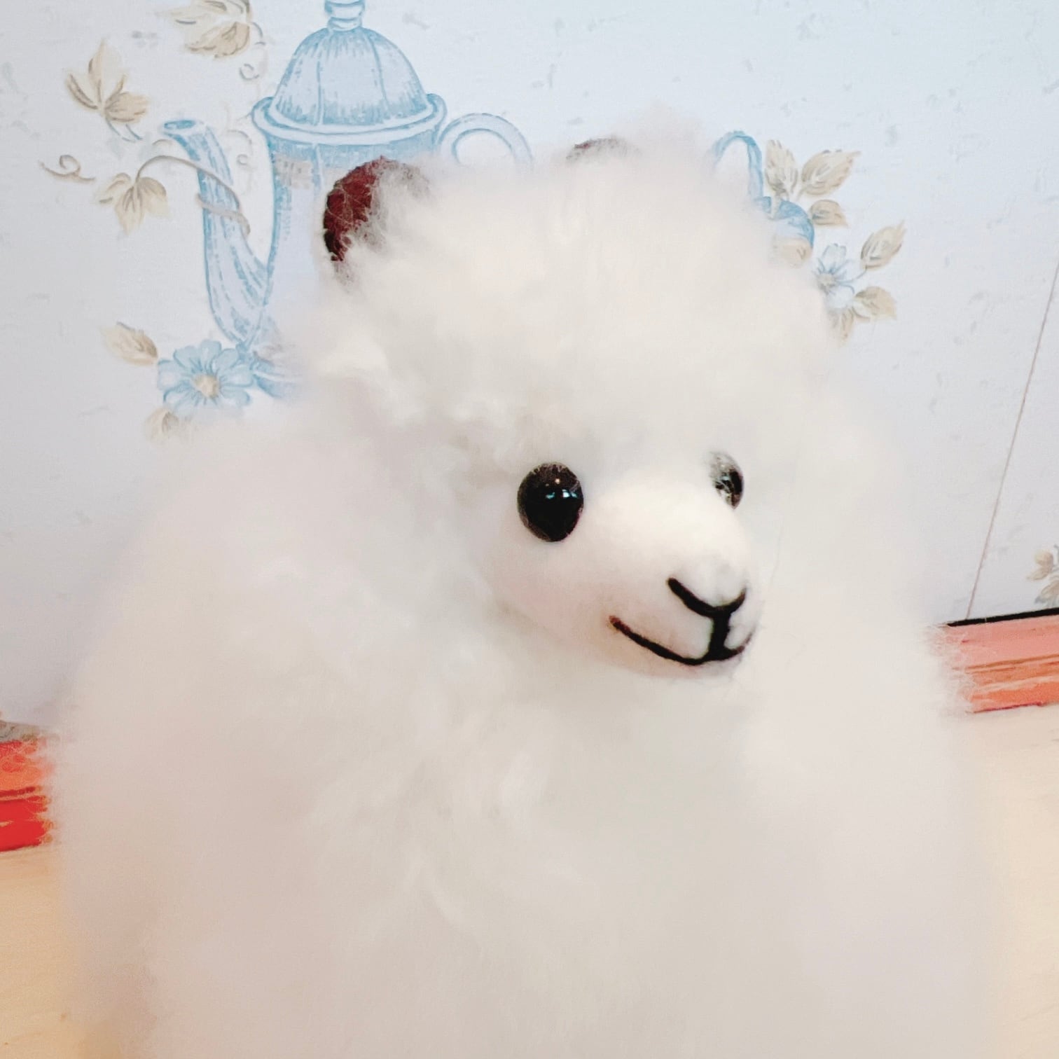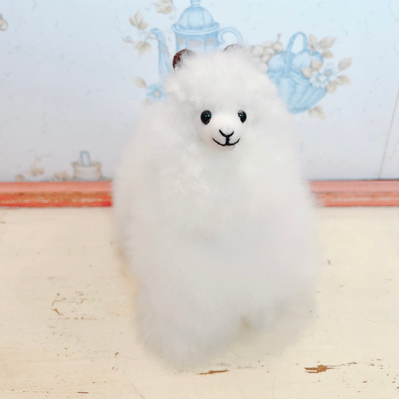 ベビーアルパカウール100%で作られたぬいぐるみです。ベビーアルパカの毛は、とても高級とされています。
