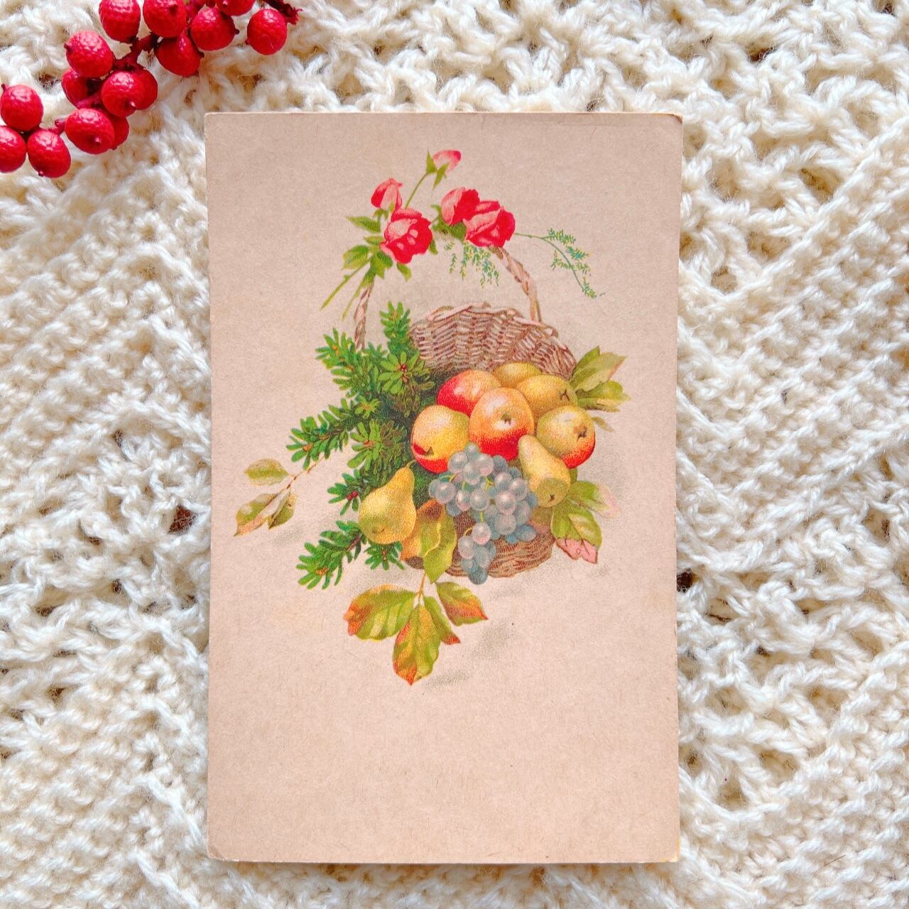 Antique postcard(Fruit basket)